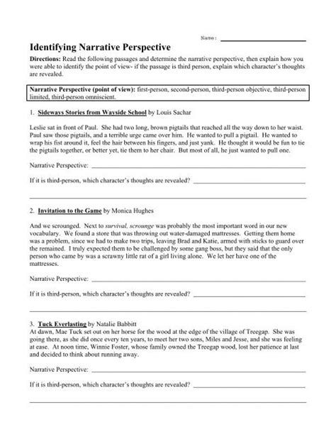 Read Identifying Narrative Perspective Worksheet Answers PDF