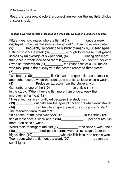 Read Cloze Passages With Multiple Choice Answers Doc
