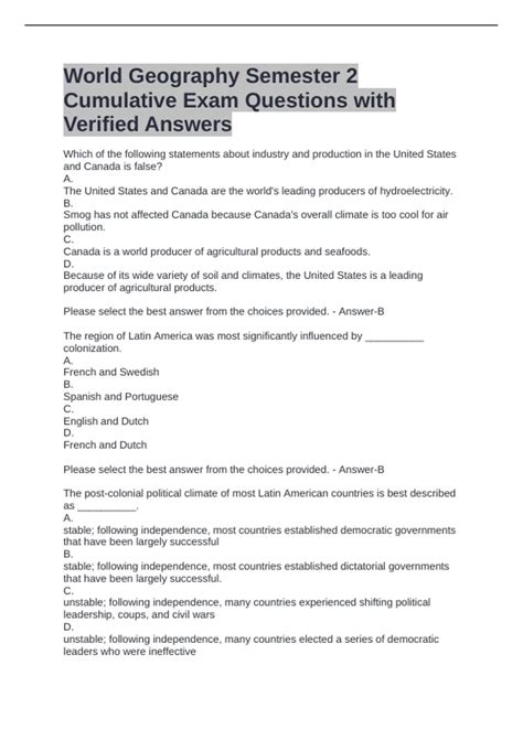 Read E2020 Geography Answers Cumulative Exam Doc